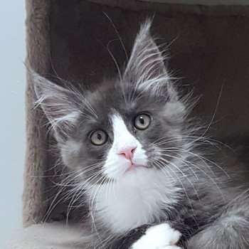 - Femelle Maine coon blue silver blotched tabby & blanc